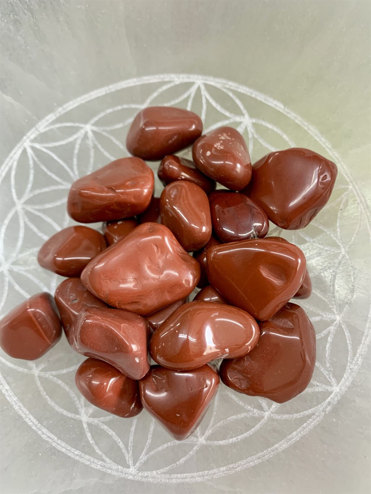 El jaspe rojo es conocido por su beneficio estimulante ligado a su tono rojo brillante, es un símbolo natural de estabilidad y fuerza.